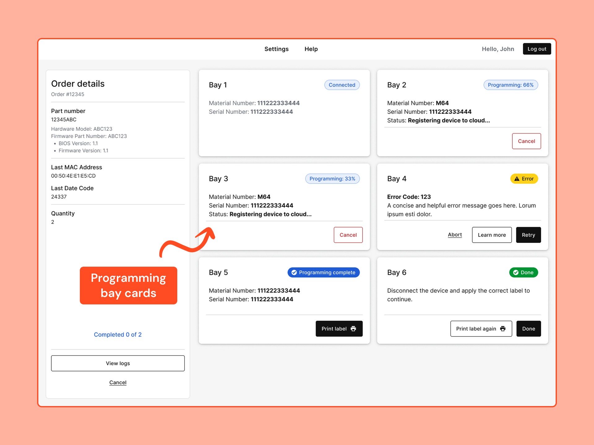 Several participants thought they had to click on the empty bay cards to start the process. So I expanded on the design system to make the cards look less clickable and improved the microcopy.